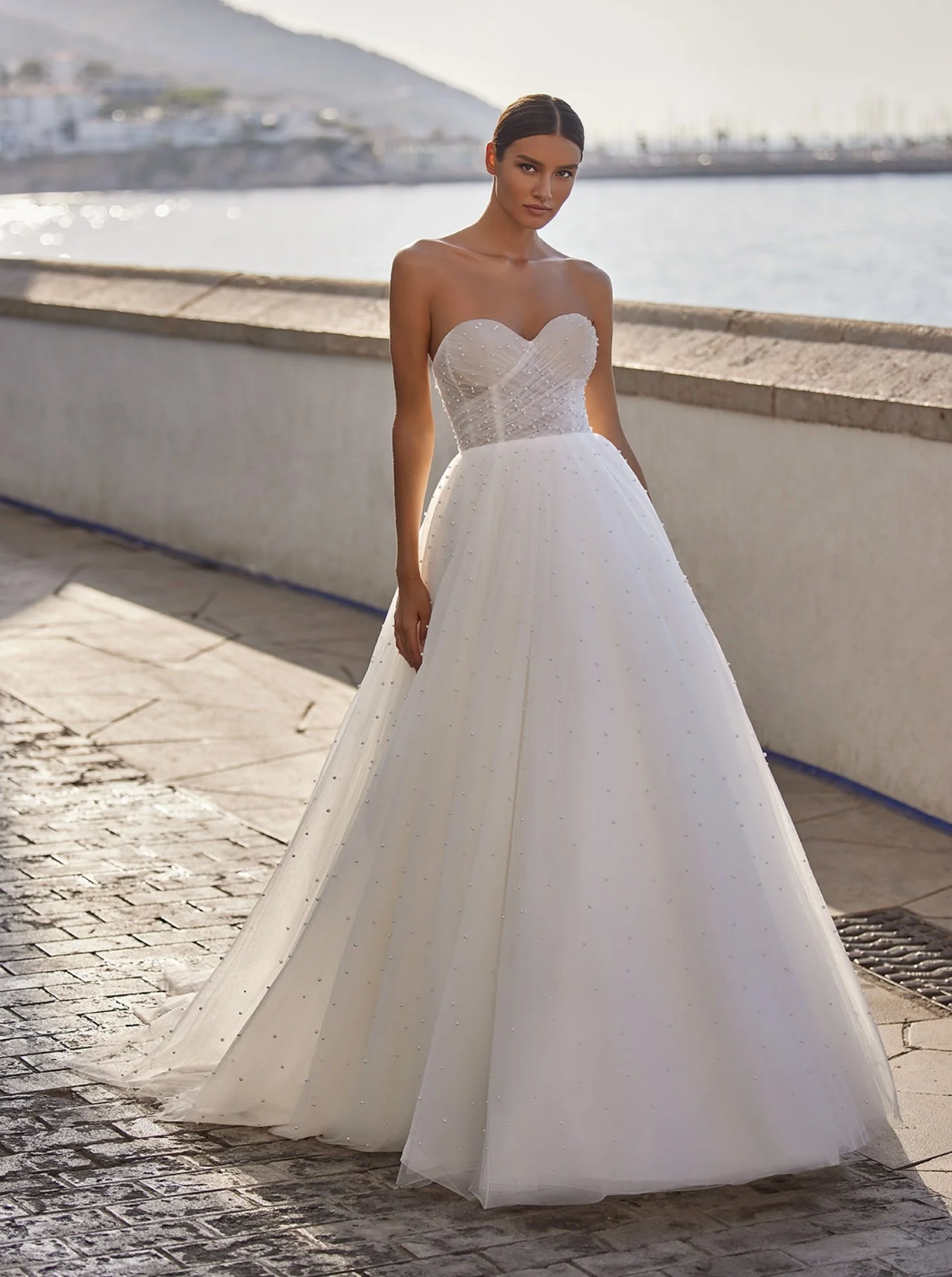 We also carry some beautiful dresses that have been discontinued that we sell discounted off the rack. Prices ranging from $400 - $1200